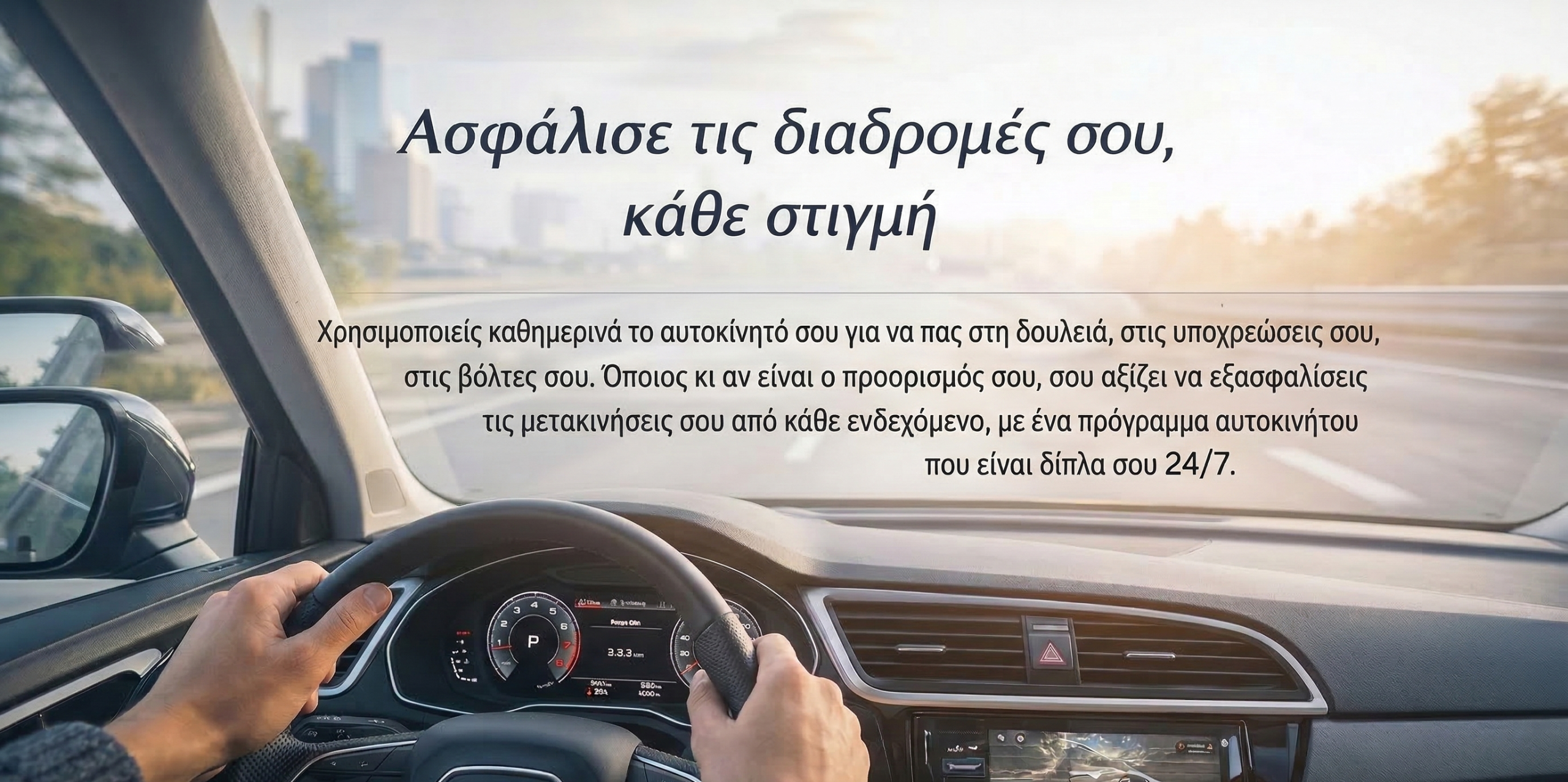 Απόλαυσε την οδήγηση με ένα ολοκληρωμένο πρόγραμμα ασφάλισης αυτοκινήτου, επιλέγοντας τη λύση που ταιριάζει στις ανάγκες σου: